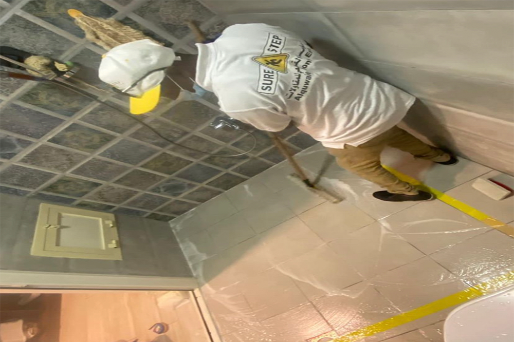 مركب كيميائي طويل الأمد ينتج عنه عمل مداس غير مرئي ومتطور على سطح الأرضيات المعدنية الصلبة وأحواض الاستحمام المصنوعة من البورسلان/الأرضيات المطلية